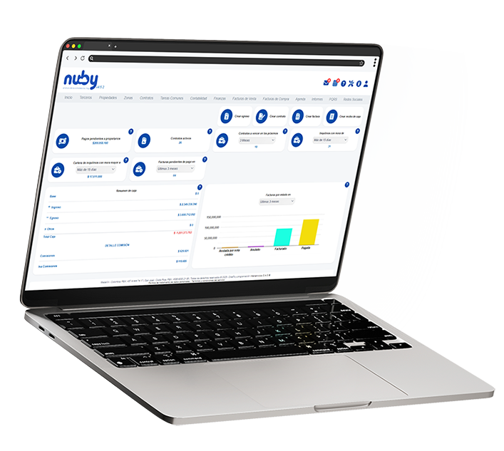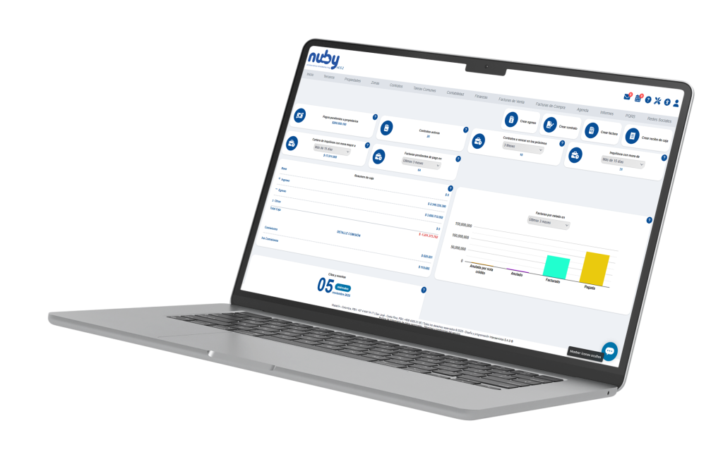Toma decisiones basadas en datos reales. Nuestro módulo ERP/Contable simplifica tu facturación, pagos y comisiones, dándote reportes claros y control total de tu rentabilidad.